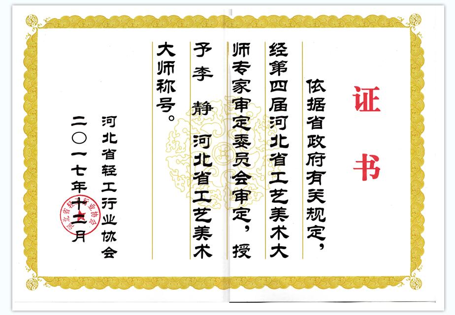 祝賀久藝園林藝術總監李靜授予河北省工藝美術大師稱號。